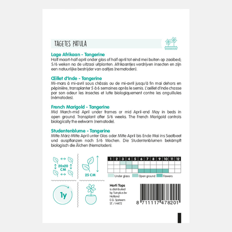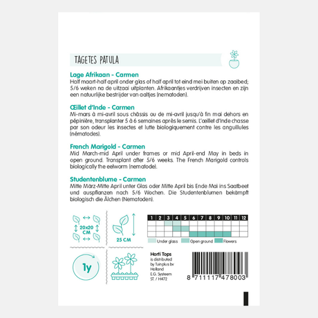 - Œillet d'Inde sauvage BIO (Tagetes patula sauvage) : grande plante buissonnante aux fleurs rouges à orange. Robuste, il attire les pollinisateurs et est idéal en intercalaire au potager.