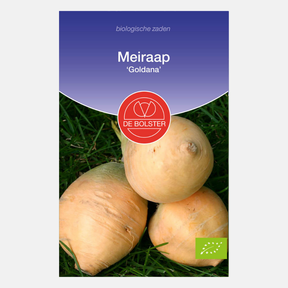 Le navet 'Goldana' du type Ronde Gele est un légume-racine à croissance rapide dont les feuilles peuvent être consommées comme feuilles de navet. 'Goldana' est un tubercule rond à chair jaune. Un sac fait environ 8 m2 et la distance de plantation est de 30 x 15 cm.