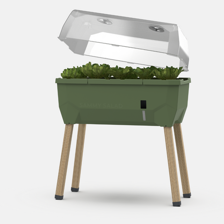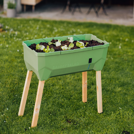 Notre potager surélevé s'appelle Sammy Salad . Outre la laitue, vous pouvez bien sûr y cultiver d'autres légumes verts à feuilles, des herbes aromatiques, des tomates naines et bien d'autres légumes.