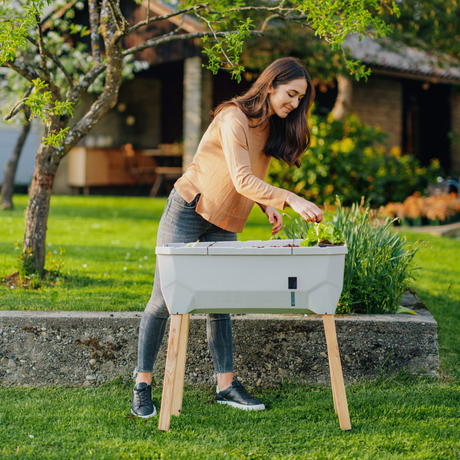 Il peut contenir 40 litres de terre et dispose d'un réservoir d'eau de 15 litres. Si vous partez en vacances, vous pouvez installer le potager surélevé sur pieds à mi-ombre et vos plantes continueront de pousser sans souci. Super facile !