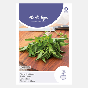 Basilic citronné. De mi-mai à juillet dans un pot de culture et transplanté après environ quatre semaines ou dans un pot de fleur et légèrement éclairci. Plante aux feuilles vert vif et aux fleurs blanches. Il a un goût et une odeur agréables de citron.