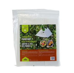 Nous vous recommandons donc d'installer le piège à partir de la mi-avril et de le laisser en place jusqu'à la fin septembre si vos prunes sont tardives. Vous pouvez acheter des capsules de phéromones supplémentaires séparément.