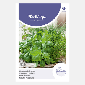Herbes mélangées. Semer en mars-août dans un endroit abrité et chaud. Joli mélange d'herbes pouvant être utilisées quotidiennement, comme le basilic, le persil, la ciboulette, la roquette et le cresson. Prépare divers plats frais et délicieux.