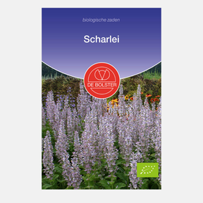 Les inflorescences de la sauge sclarée sont particulièrement frappantes en raison des grandes bractées de couleur violette entourant les fleurs bleu clair. Cette plante est une plante apicole aromatique aux grandes feuilles velues. Un sac fait environ 20 m2 et la distance de plantation est de 35x35 cm.