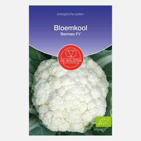Cauliflower 'Bermeo F1' is suitable for early summer cultivation. The cabbage is flat-round in shape and has good hardness. Reasonably self-covering. This hybrid variety was developed for professional cultivation; the variety is more uniform and has a shorter growing period compared to the open-pollinated varieties in our range. For early summer cultivation: sow from early February to mid-March. Plant from mid-March to mid-April, for a harvest in June and early July. Keep a planting distance of 75x55 cm. These seeds are provided with an organically certified coating which makes sowing easier.