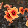 Dahlia ‘HS Date’ is een enkelbloemige dahlia met warme abrikoos-oranje bloemblaadjes die naar het hart toe een dieper roodtintje krijgen. Het contrasterende donkere blad laat de bloemen nog intenser oplichten. Door de open bloemvorm is ‘HS Date’ ontzettend aantrekkelijk voor bijen en vlinders. Een vrolijke en natuurlijke soort die zowel in de border als in een pluktuin perfect tot haar recht komt.