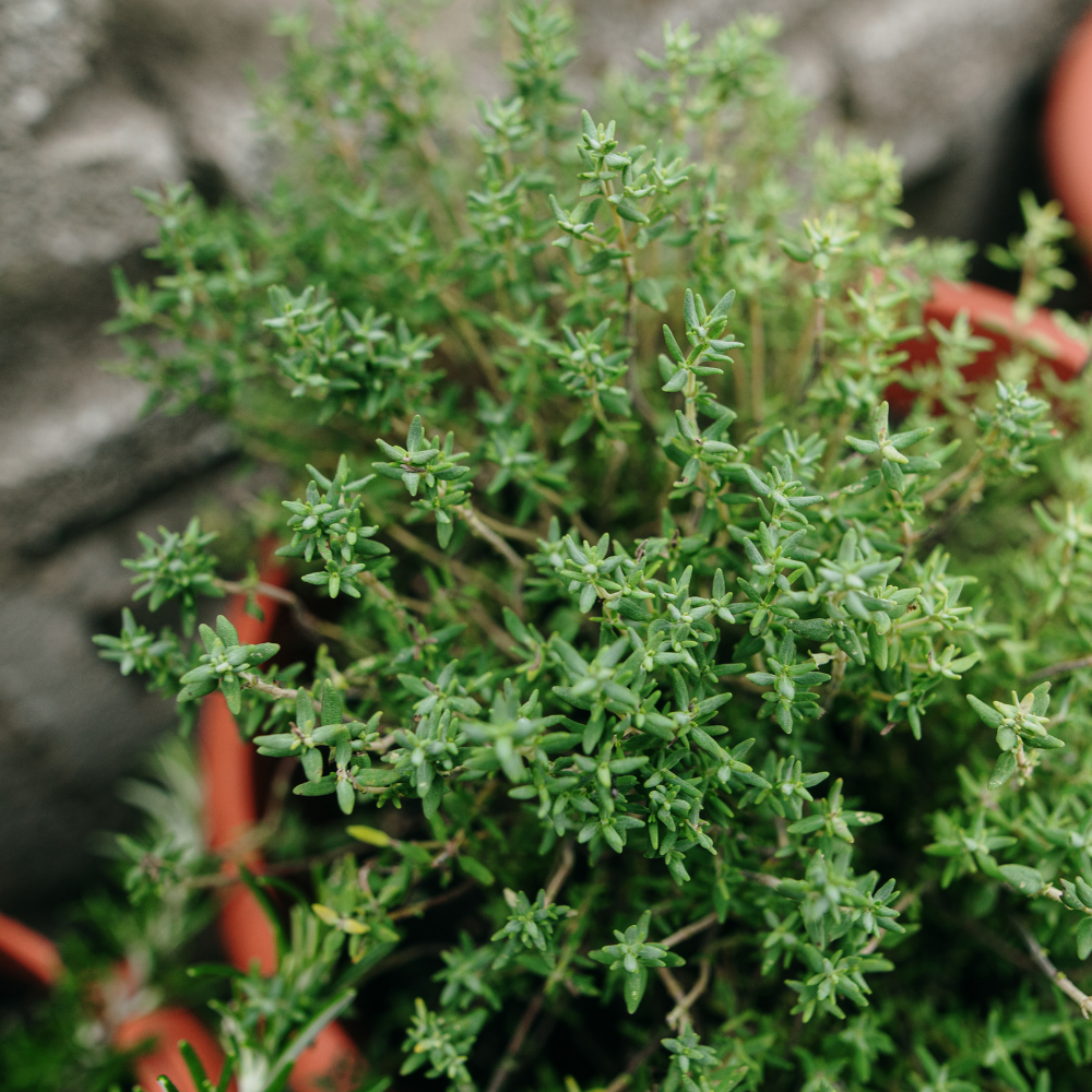 Echte tijm is een klassiek en veelzijdig keukenkruid met kleine, aromatische groene blaadjes en een sterke, kruidige smaak. Onmisbaar in mediterrane gerechten, soepen, stoofpotten en kruidenmengsels. Daarnaast geeft tijm met zijn paarse bloemetjes in de zomer kleur en trekt hij bijen en andere nuttige insecten aan.