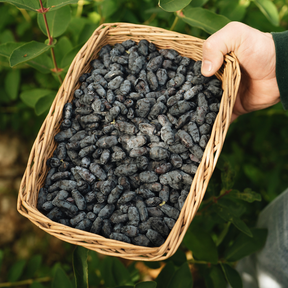 'Boreal Blizzard' is one of the tastiest honeyberry varieties and has large fruits. The honeyberry is frost-resistant and can withstand temperatures down to -50ºC. Young plants like a lot of water and a lot of sun, but should not be too wet. The plant grows into a shrub of about 1.5 meters high and one meter wide. A good pollinator for 'Boreal Blizzard' is 'Strawberry Sensation'.