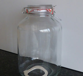 Glass preserving jar with clip closure. The clip with preserving ring ensures that the terrine is completely closed.