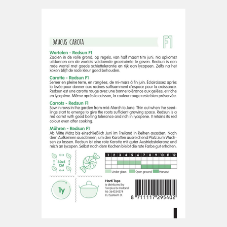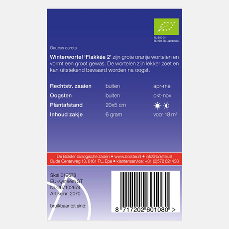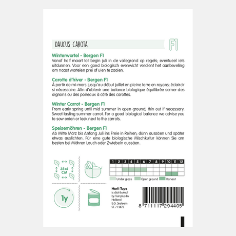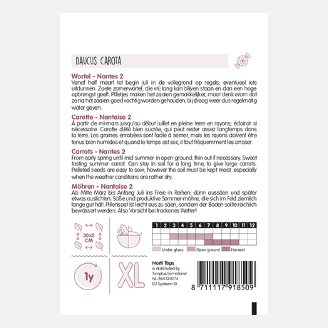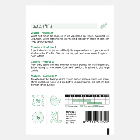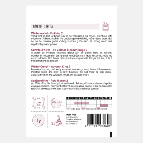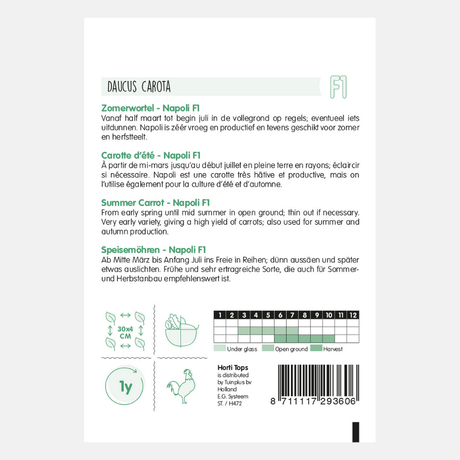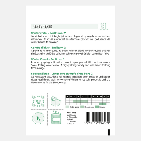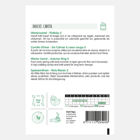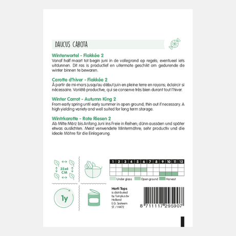 If you want to enjoy carrots from August well into winter, you can sow Berlikum or Flakkese carrot seeds between March and July. These late-season carrots can simply be left in the ground, acting as a natural refrigerator.