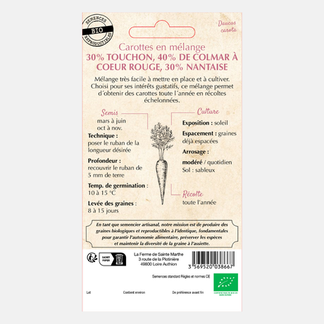 Seed tape carrot mix (Touchon. Colmar and Nantes) BIO seeds