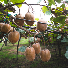 Kiwi 'Jenny' is a productive, self-pollinating climber with tender kiwifruit that ripen from September to October and have a sweet, refreshing flavor. The plant grows vigorously and can reach a height of 3–4 m, blooms in spring with inconspicuous flowers, and produces a bountiful harvest. Thanks to its compact, easily trained vines, it also makes an elegant addition to pergolas, fences, or balconies. It grows best in fertile, well-drained soil in a sunny to partially shaded location.