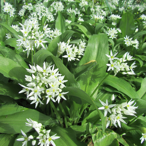 Wild garlic is a fragrant, organic plant known for its mild garlic flavour. Perfect for seasoning salads, soups and sauces, or as a tasty addition to various dishes. The foliage of wild garlic appears in the spring and has large, green leaves. The plant blooms in the spring with white, star-shaped flowers that spread a pleasant scent. Wild garlic likes a shady to semi-shady location and grows best in moist, well-drained soil. The final height is approximately 30 cm.
