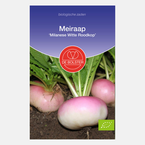 Turnip 'Milanese Witte Roodkop' can be sown in both spring and autumn. This variety produces a two-coloured tuber that tastes particularly good raw. The tubers have a diameter of 6 to 8 cm. One bag is for approximately 8m2, and the planting distance is 30x15 cm.