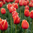 The Confucius tulip is a striking Darwin hybrid with large red flowers edged in yellow and orange. Its sturdy stems and rich color make it a real eye-catcher in the garden. Confucius blooms in mid-spring and is very vigorous.