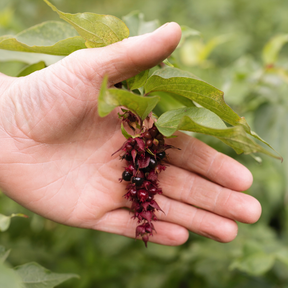 De Fazantenbes (Leycesteria Formosa), ook wel Himalayakamperfoelie genoemd, is een exotisch ogende struik die veel sierwaarde biedt. Van juli tot september bloeit hij met hangende trossen paars-rode schutbladeren en wit-roze bloemen, die bijen en vlinders aantrekken. In de nazomer verschijnen donkerpaarse tot zwarte bessen, geliefd bij vogels en bijzonder van smaak: rijp smaken ze naar karamel met chocolade.