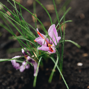 De saffraankrokus is een herfstbloeier en groeit het beste op een arme, goed doorlaatbare bodem. Plant de bollen 15 cm van elkaar en 15 cm diep, tussen half augustus en half september, op een zonnige plek. De krokus bloeit dan rond half oktober, het ideale moment om de bloemen te oogsten. Let op! Oogst de bloem in zijn geheel, niet alleen de saffraan. Snijd de bloem zo dicht mogelijk tegen de grond af om de bol te stimuleren om nog een keer te bloeien in hetzelfde seizoen. Saffraan bestaat uit de vrouwelijke bloemdelen (de stempels/stigma's) van de krokus (oranje gekleurd). Droog deze stempels bij 40-50 °C in de oven totdat ze licht krokant zijn. Je kunt ze ook op de verwarming drogen, hoewel dit wat langer duurt.
