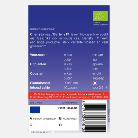 - Honingtomaat 'Miel de Tomate' BIO - Dit productieve, droogte- en barstbestendige tomatenras produceert sappige vruchten van 15-20 gram