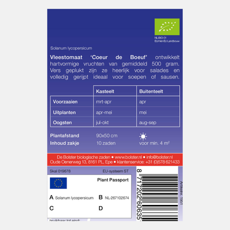 - Vleestomaat 'Coeur de Boeuf' BIO - De hartvormige 'Coeur de Boeuf' tomaat is een snelgroeiende vleestomaat en ontwikkeld grote vruchten rond de 500 gram