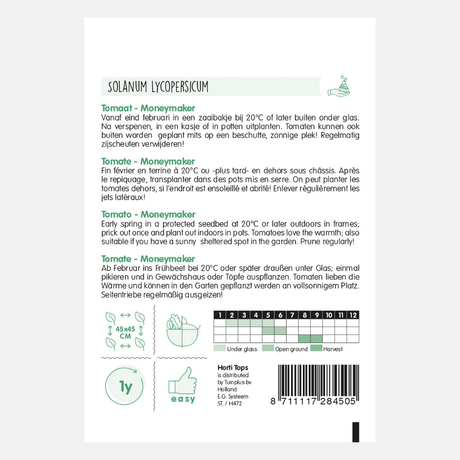 - Tomaat ‘Moneymaker’ - Een favoriet bij hobbytuinders. Geeft middelgrote, ronde tomaten in trossen van gemiddeld 80 gram per stuk. Ideaal voor salades, productief en makkelijk.