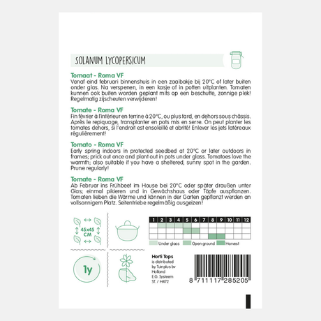 - Tomaat ‘Roma VF’ - Vruchtbaar ras met dikke wand en stevig vruchtvlees en weinig sap. Het stevige vruchtvlees is ideaal voor verwerking en geeft een volle smaak bij het koken.