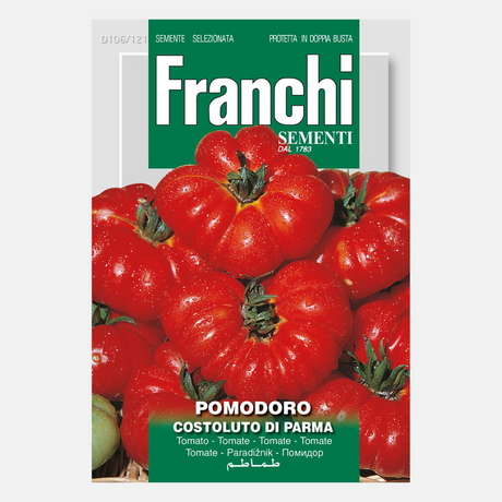 - Tomaat ‘Costoluto de Parma’ (Franchi) - Italiaanse trostomaat met geribde vorm en volle smaak. Zowel decoratief als heerlijk op brood.