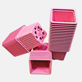 Deze P7 vierkante plantpotjes (7 x 7 x 7 cm) zijn gemaakt van zacht plastic. Dankzij de vierkante vorm benut je de ruimte optimaal in onderzettrays, zonder verspilling zoals bij gerecupereerde potjes.