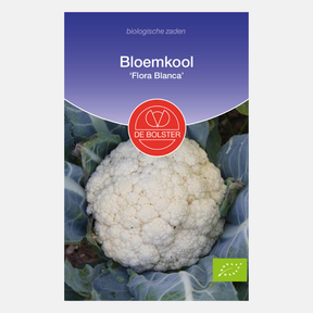 Bloemkool 'Flora Blanca' kan mits afdekking met een vliesdoek overwinteren. Dit ras is geschikt voor de herfstteelt en houdt van een voedzame, goed doorlatende bodem. Eén zakje is voor circa 30m2, en de plantafstand bedraagt 60x50 cm.