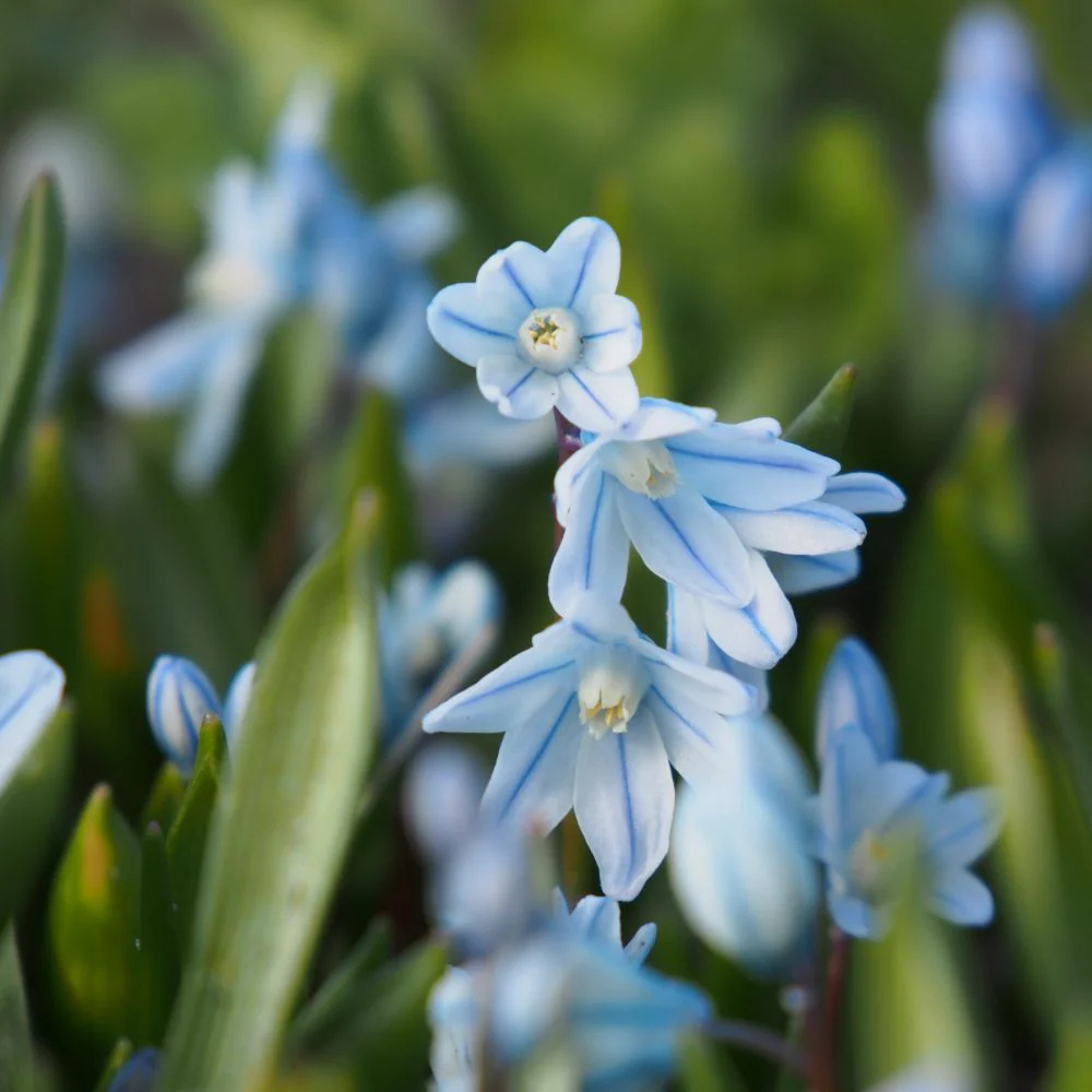 Saffierhyacint ‘Alba’ (Puschkinia scilloides var. libanotica ‘Alba’) is een charmante, laagblijvende voorjaarsbloeier met kleine stervormige witte bloemen met fijne streepjes. De bloemen doen denken aan wilde hyacinten, maar dan in een veel kleinere en elegantere vorm. Deze vroege bloeier staat prachtig in een border, in een pot of verwilderd in een grasveld.