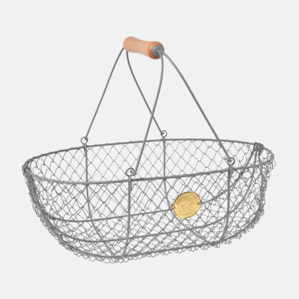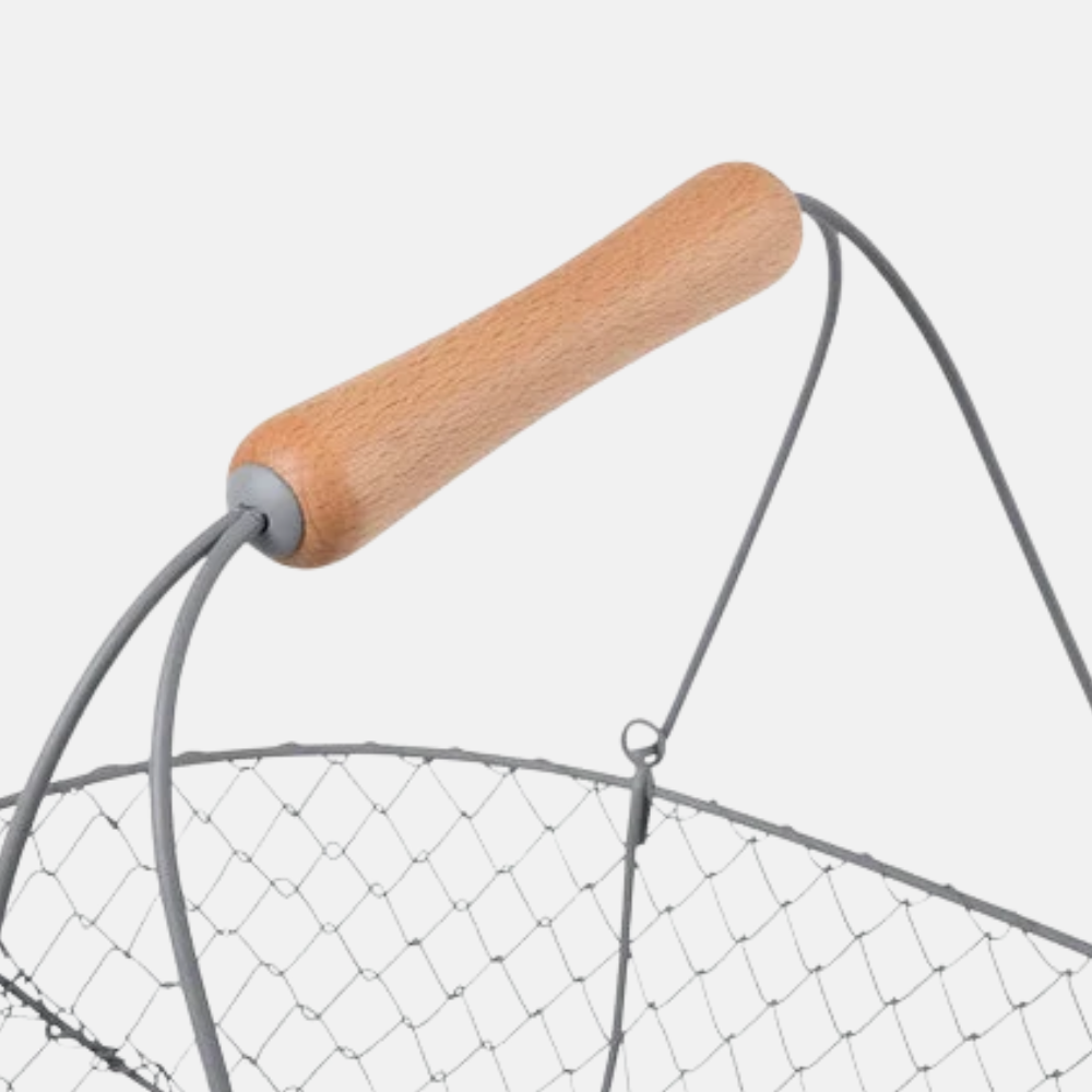 Deze stijlvolle handgemaakte draadmand is een echte must-have. Met zijn royale capaciteit en doordachte ontwerp is hij zowel praktisch als decoratief. Ideaal om groenten, fruit of kruiden te oogsten. Het open weefsel zorgt ervoor dat aarde en water eenvoudig weglopen, waardoor je oogst schoon en droog blijft.