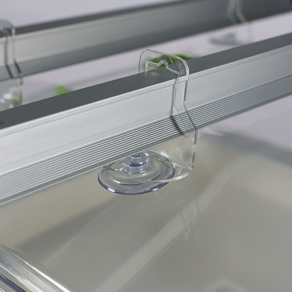 Met de deze ophangset bevestig je onze LED groeilampen gemakkelijk op je kweekbak. Liever ophangen met ophangkabels? Dat kan ook, gewoon de plaatjes bevestigen, ophangkabel er aan en klaar! Ophangkabel is niet inbegrepen.